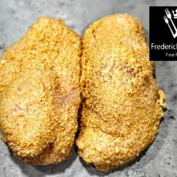 The mini roast dinner kit, it contains 2 chicken breasts wrapped in oak smoked bacon with sage and onion stuffing balls and 2 chipolata sausages.